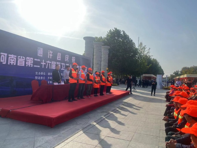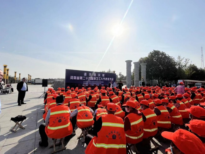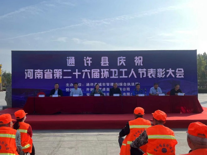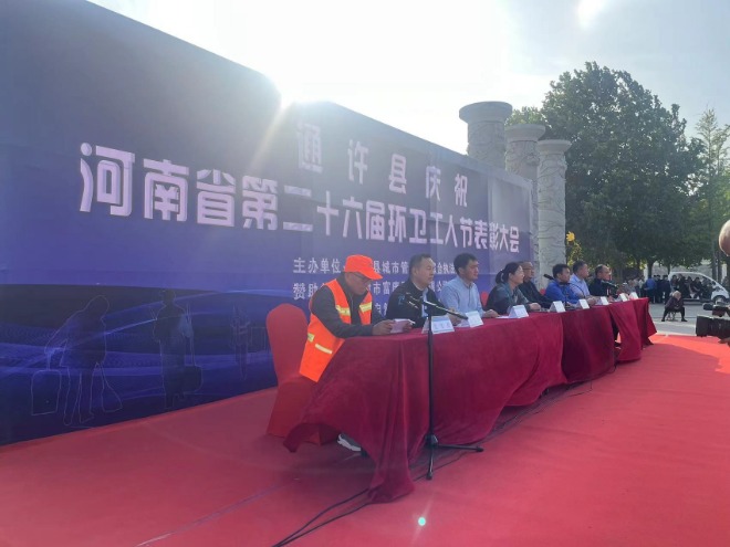 为进一步激发社会关注环卫事业、关心环卫工人的热情,体现社会对环卫工人的关注和支持,10月26日,通许县城市管理局在咸平广场举行了河南省第二十六届环卫工人节表彰大会。此次参会的有县领导周景刚、城管局(综合执法局)党组书记、局长孔超、城管局副局长张慧敏、市容市政服务中心主任王永亮、通许县城市投资运营有限公司执行董事、通明市政总经理王春华以及安徽k8凯发(中国)天生赢家·一触即发 科技有限公司通许项目经理冯其永。