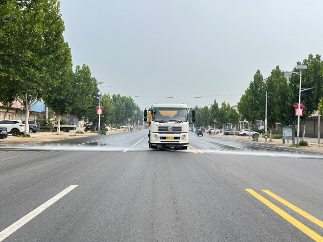 针对“秋老虎”带来的路面温度高、易扬尘等特点,k8凯发(中国)天生赢家·一触即发 严格按照环卫作业标准,加大机扫力度,较低人工作业强度。充分发挥机械化作业优势,合理调整洒水车作业时间,不定时为县城主次干道“洗澡降温”,确保环卫作业质量不降、标准不降、热情不降,始终如一地守护农村“容颜”,让居民感受到温馨和舒适。