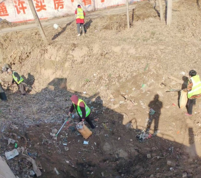 在015县道周边的坑沟,由于地势低洼且隐蔽,成为了各类垃圾的“藏身之处”。塑料袋、饮料瓶、建筑垃圾等长期堆积,不仅影响了周边的美观,还滋生蚊虫,散发异味,对居民生活造成困扰。此次清理工作中,保洁员们携带铲子、扫帚、垃圾袋等工具,分组对坑沟进行地毯式清理。面对坑沟内复杂的垃圾情况,他们不畏脏累,有的用铲子小心铲除附着在坑壁的淤泥和垃圾,有的则徒手将大件垃圾搬运出来,确保清理彻底。