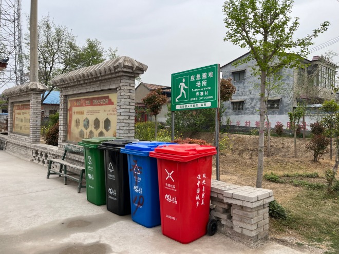 走进乡村街道,平坦又干净的村道让人眼前一亮,地面一尘不染,连一片树叶都很难寻踪迹。道路两旁,不见垃圾杂物,只有整齐排列的垃圾投放点,垃圾桶颜色分明,上面的分类标识清晰醒目。村民们也养成了主动分类的投放的好习惯。
